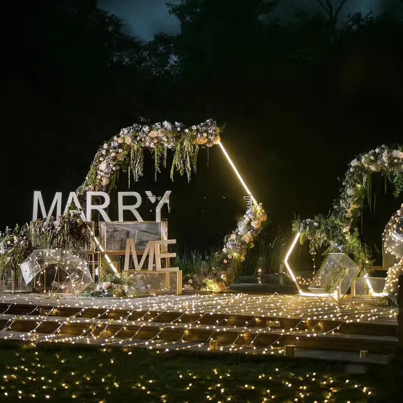 BEST QUALITY Wedding props hexagonal wrought iron arch frame background decoration wedding stage iron frame wedd