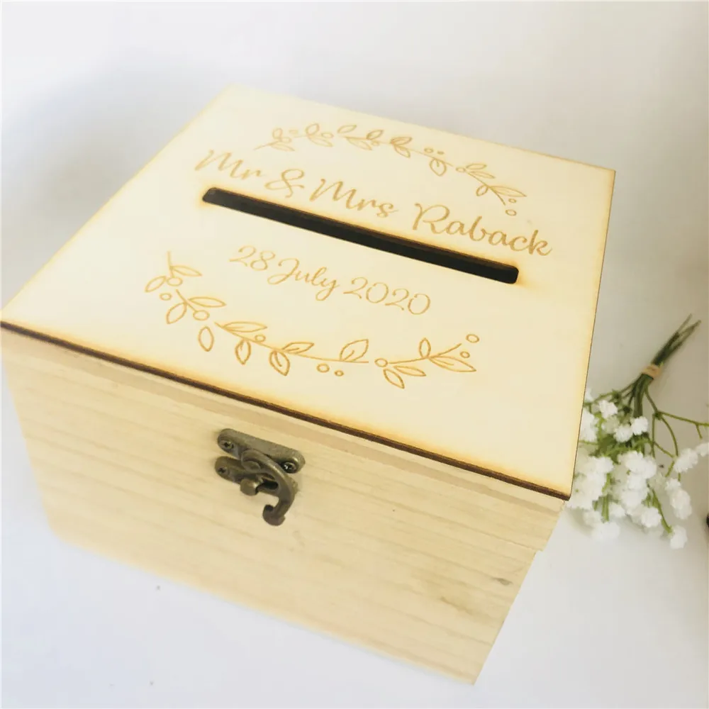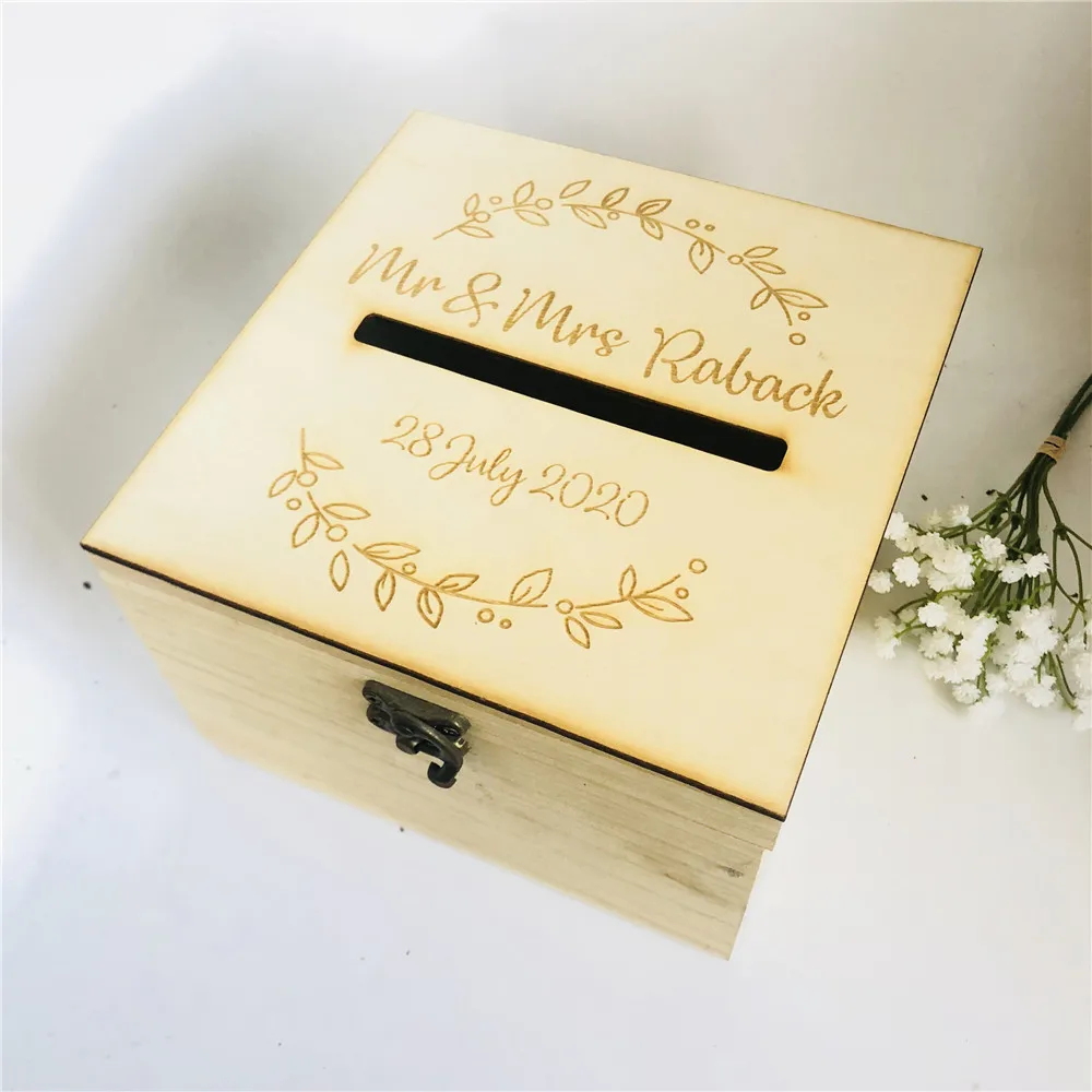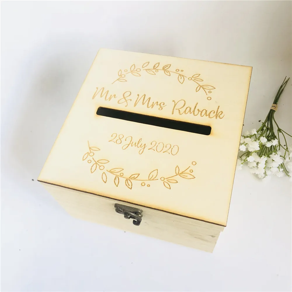 Personalised Bride and Groom Wedding Guests Wish Post Box with wreath Cards Envelopes Drop in Memor